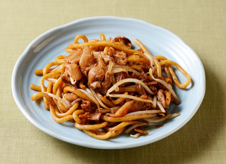福島県双葉郡浪江町で昔から親しまれる極太麺の『なみえ焼そば』。通常の約3倍もある太い麺と、うまみたっぷり濃厚ソース、豚肉とモヤシだけのシンプルな具が特徴です。